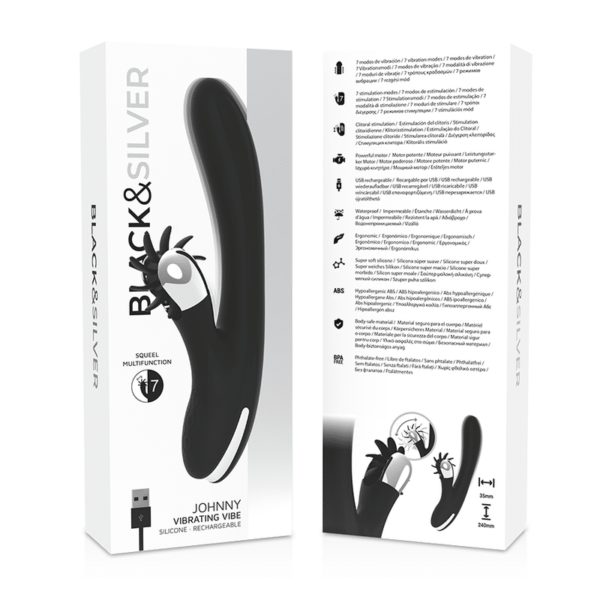 BLACK&SILVER JOHNNY VIBE VIBROMASSEUR & STIMULATEUR POING G ET CLITORIDIEN