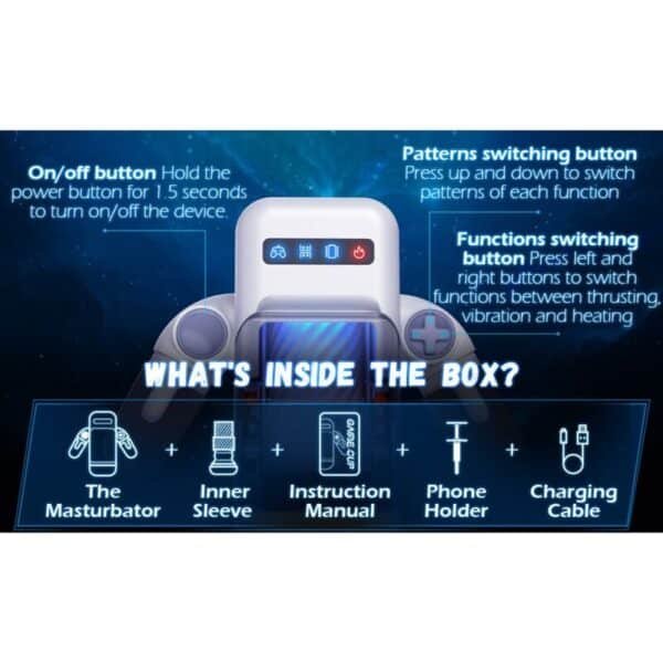 GAME CUP – MASTURBATEUR À VIBRATION DE POUSSÉE AVEC FONCTION CHAUFFANTE ET SUPPORT MOBILE – NOIR
