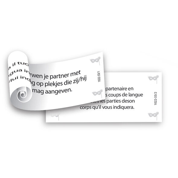 Ce jeu na pas son pareil. Il ny a pas de limite de temps et il ny a que des gagnants. Ce jeu, plein dhumour, va renforcer lintimité de votre relation. Certains défis peuvent être réalisés immédiatement, mais la location dun film érotique ou la préparation dune surprise captivante seront le prélude de moments de plaisir à passer ensemble un peu plus tard.
