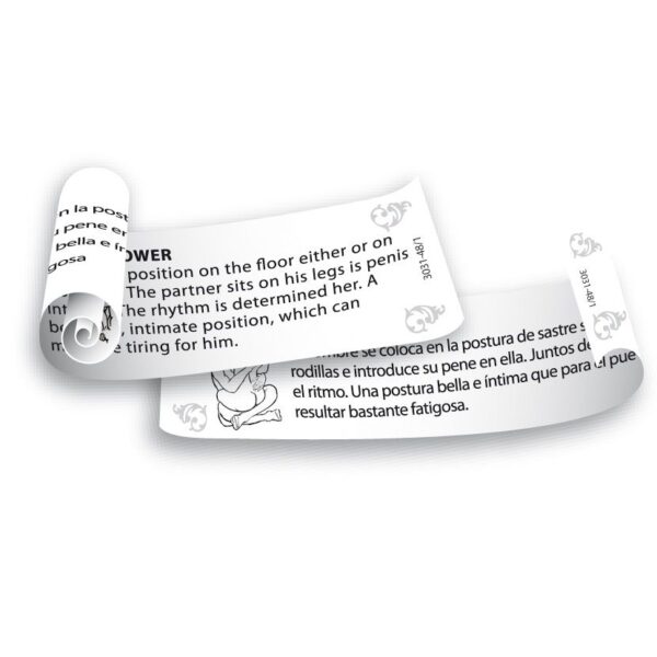 Une sensation pour vous et votre partenaire! À l’aide de la pince à épiler, vous choisissez un parchemin dans le c?ur. Quelle position érotique allez-vous essayer? Sera-ce le tour de la déesse, le bateau de l’amour ou l’adoration? Acceptez le défi et vivez ensemble le plaisir et l’intimité.