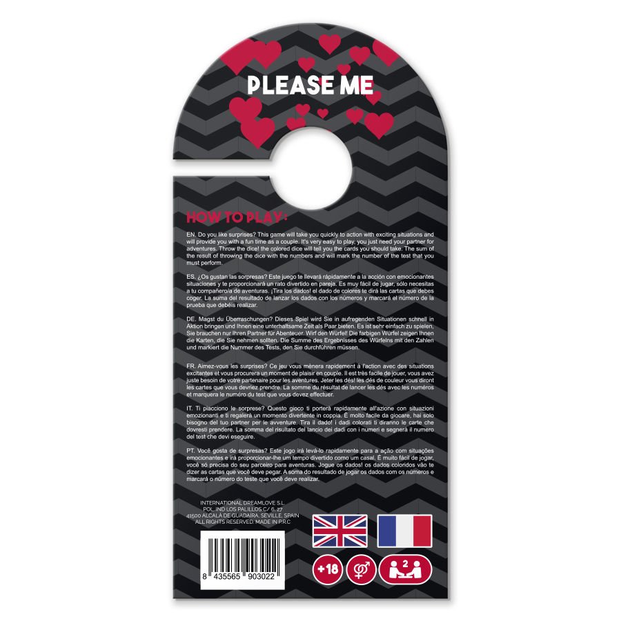 Ten cuidado porque incluso el embalaje de Love Dices desempeña una función: sin el Love Dices se convierte en un indicativo para la puerta con el fin de mantener al margen a indeseados mirones.