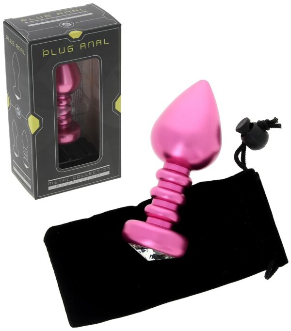 Plug bijou anal rose en aluminium décoré d’un gros strass.