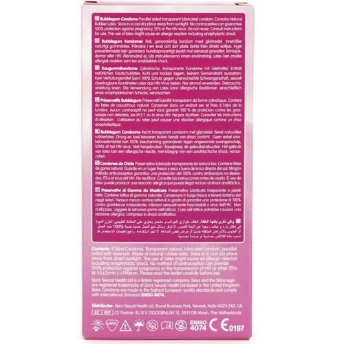 Ajoutez une touche fruitée et ludique à votre gamme de produits avec les préservatifs Skins Blow Me Bubble Gum.